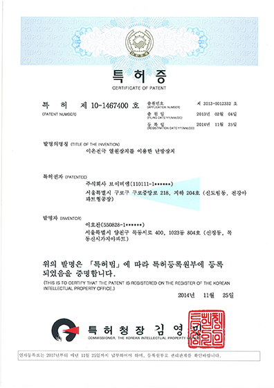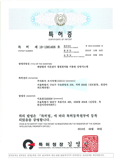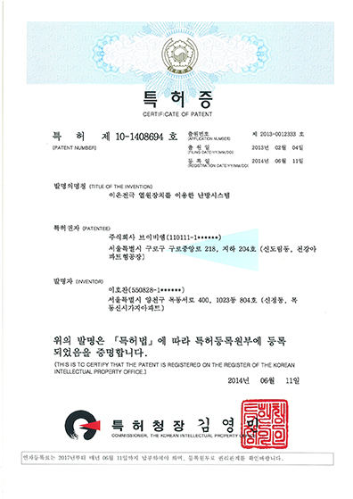 난방시스템의 특허증