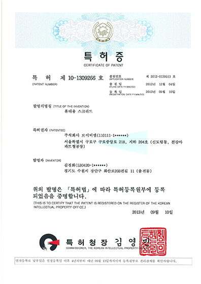 휴대용 스크리드의 특허증