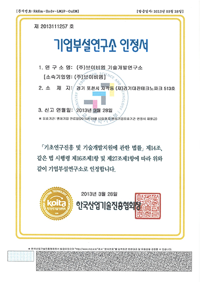 기업부설연구소 인정서