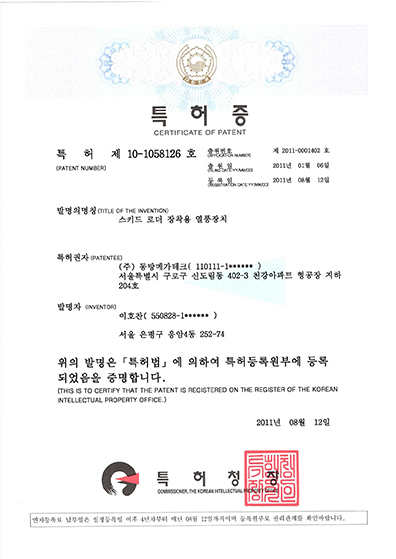 구동장치의 특허증