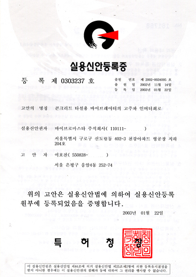 고주파 인버터회로의 실용신안등록증
